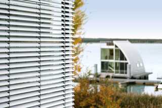 Filigrane Flachlamellen in hochflexibler oder windstabiler Variante mit perfekter Durchsicht und geringer Pakethöhe – kombinierbar mit verschiedenen Systemen und Führungsarten für eine optimale Integration an jeder Fassade.